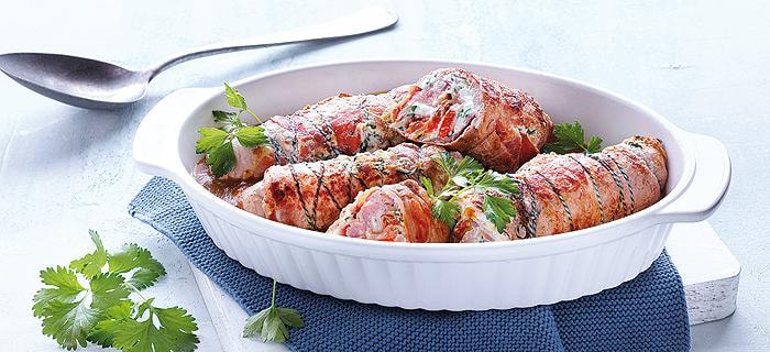 Schweinefleischrouladen mit Paprika gefüllt auf Senfsoße