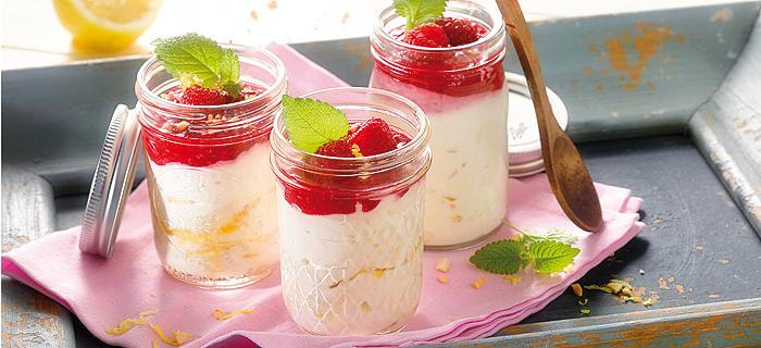 Mandel-Joghurtcreme mit Himbeersoße