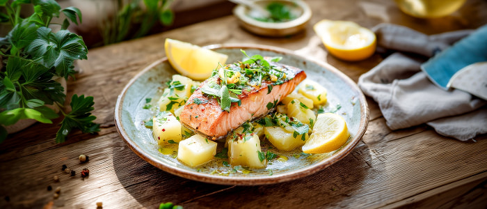 💡 Tipp: Für ein besonders feines Aroma etwas GEFRO Bio Olivenöl Nativ Extra kurz vor dem Servieren über den Lachs träufeln.