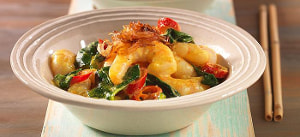 Garnelencurry in Kokosmilch mit Karamellzwiebeln