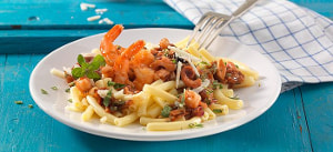 Fischwraps mit Garnelen und Koriander-Tomatensoße