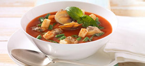 Tomatensuppe mit Muscheln und grünen Bohnen
