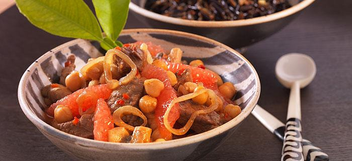 Geschmortes Rindfleisch mit Kichererbsen und Grapefruit: