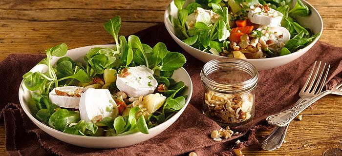 Herbstlicher Nüsslisalat mit Wurzelgemüse und Ziegenkäse