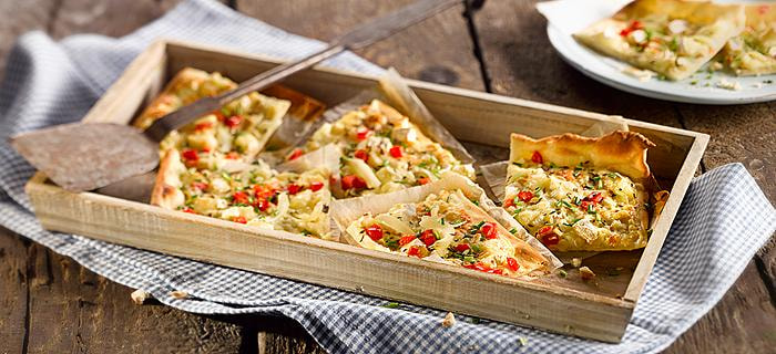 💡 Tipp: Für extra Knusprigkeit den Flammkuchen direkt auf einem Pizzastein backen.