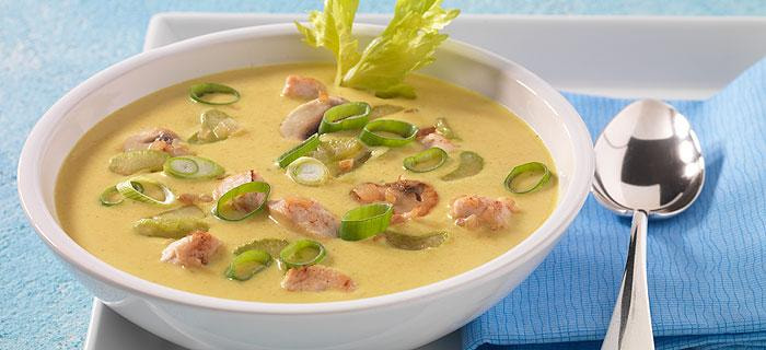 Curry-Reissuppe mit Hähnchenstreifen und Champignons