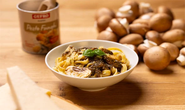 GEFRO Pesto Funghi vereint das Beste, was die Natur zu bieten hat: Köstliche Steinpilze, aromatische Walnüsse und feinster Hartkäse, abgerundet mit Zwiebeln, Petersilie, Kerbel, Pfeffer und Meersalz. Ohne Zuckerzusatz und glutenfrei - dafür mit 100 % purem Geschmack! Bei diesem Produkt verzichten wir komplett auf den Zusatz von Zucker, es enthält jedoch von Natur aus Zucker. Der natürliche Zucker stammt v.a. aus dem hohen Gemüseanteil und ist auch in der Nährwerttabelle zu finden.
